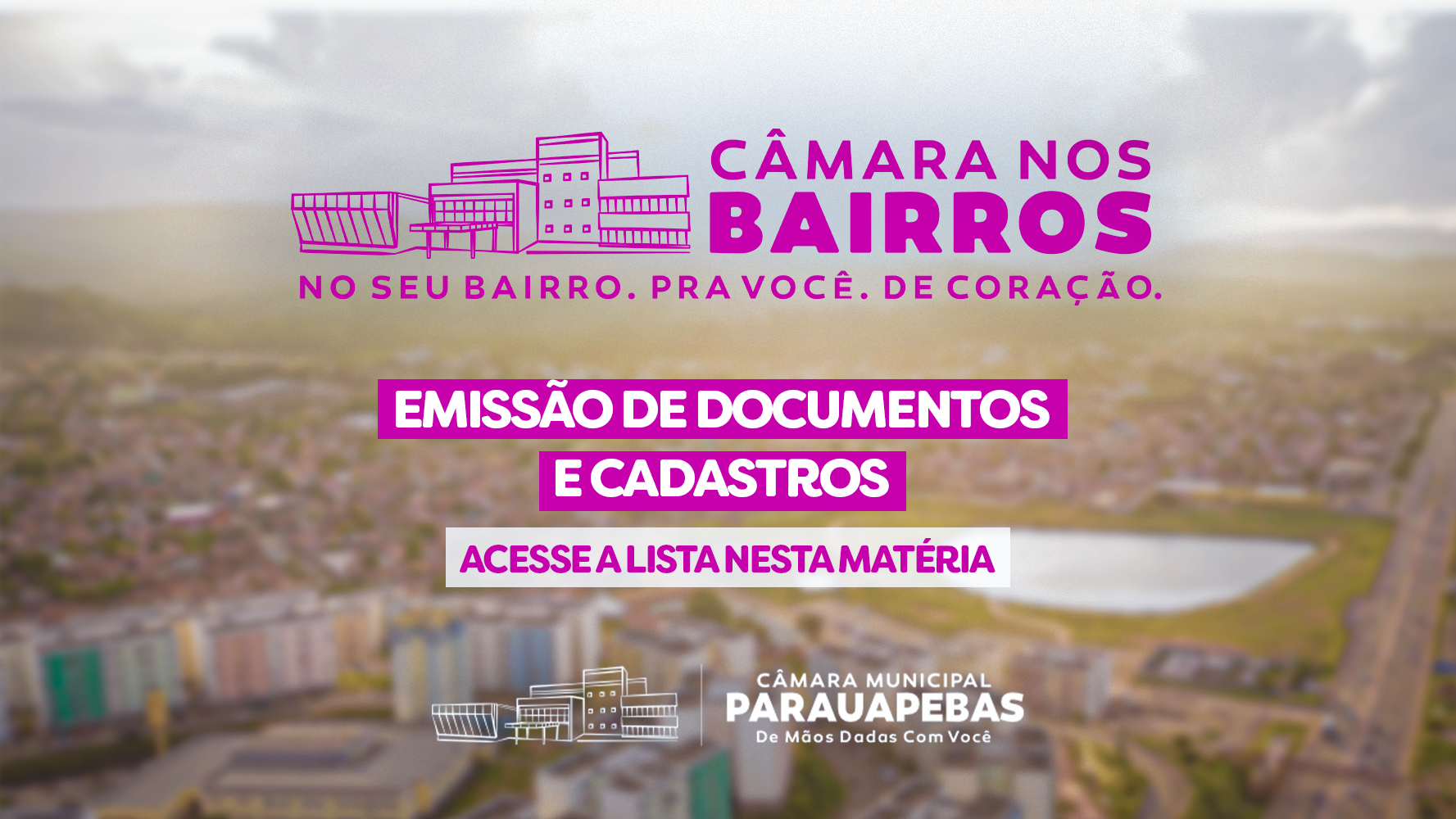 O “Câmara dos Bairros” é promovido pela Câmara Municipal de Parauapebas em parceria com o Governo do Estado, Prefeitura de Parauapebas e Ordem dos Advogados do Brasil, subseção Parauapebas.