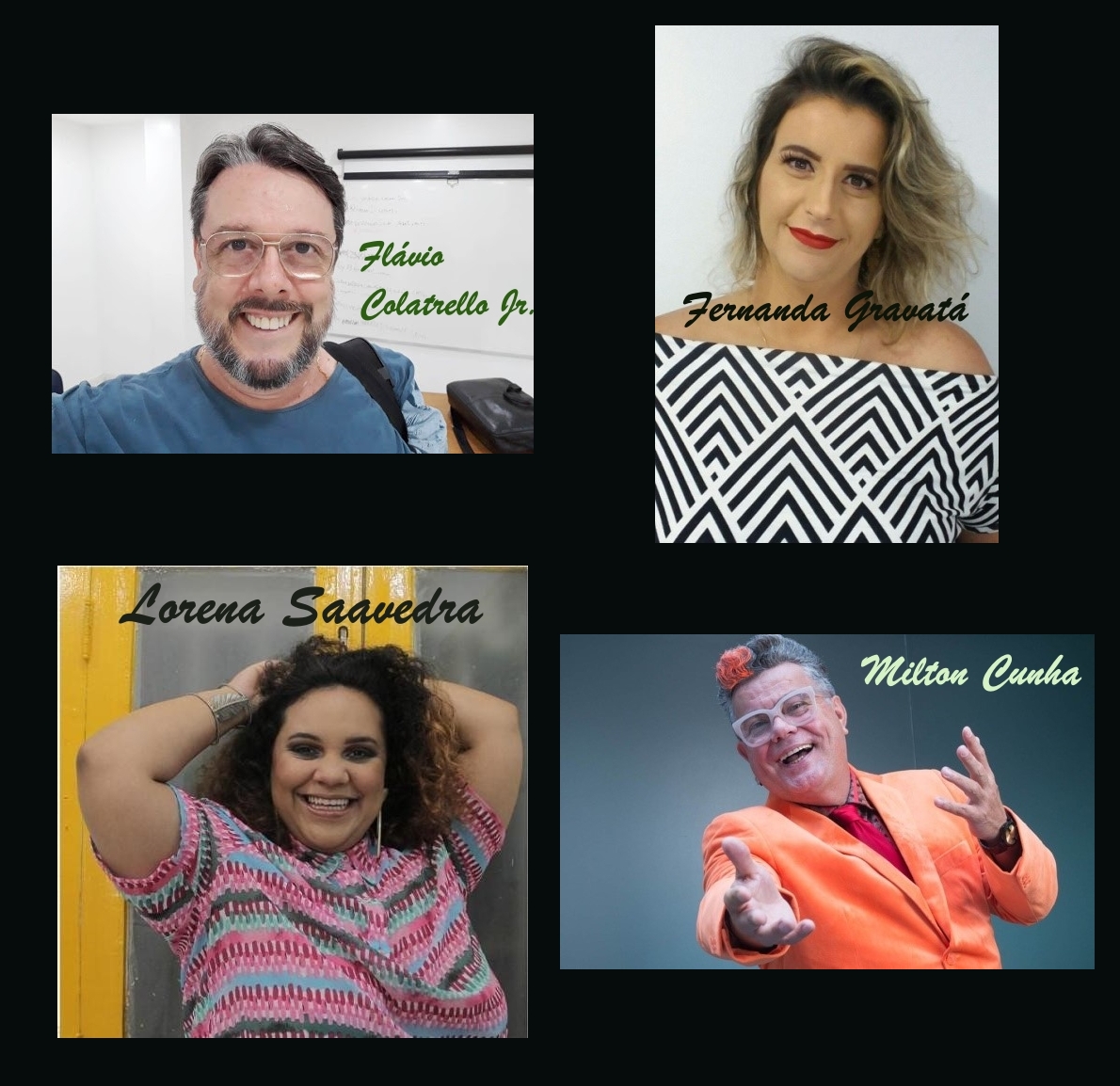 - Ministrante: Flávio Colatrello Jr. – Ator, coach, empresário, professor além de diretor com 22 anos de experiência na Rede Globo e oito anos de experiência na Record TV. Possui há 25 anos o @studio.de.atores onde ensina técnicas de interpretação para todas as idades. Ator premiado em diversas montagens teatrais adulto e infantil Foi ainda um dos criadores da Malhação nos anos 90 tendo descoberto diversos talentos.