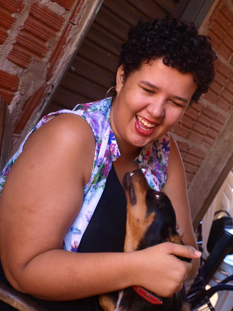 Próximo ao seu aniversário, no dia 3 de fevereiro deste ano, ela resolveu se auto presentear , procurou a instituição filantrópica Associação Protetora de Animais e do Meio Ambiente – Apama. E adotou um cachorro, de cinco meses, que estava abandonado junto com a sua primeira família, sua mãe uma pinche, e mais quatro irmãos, que foram acolhidos por outras famílias. No primeiro dia o cachorrinho lhe proporcionou 24 horas de muita alegria e também responsabilidade, pois estava com pneumonia e passou por um tratamento de um mês.