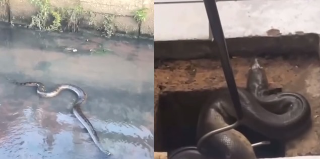 Em certo momento, os curiosos falam que a cobra poderia entrar na tubulação da via e ter acesso ao encanamento das residências. Apesar do susto, não há informações concretas se a cobra foi resgatada.
