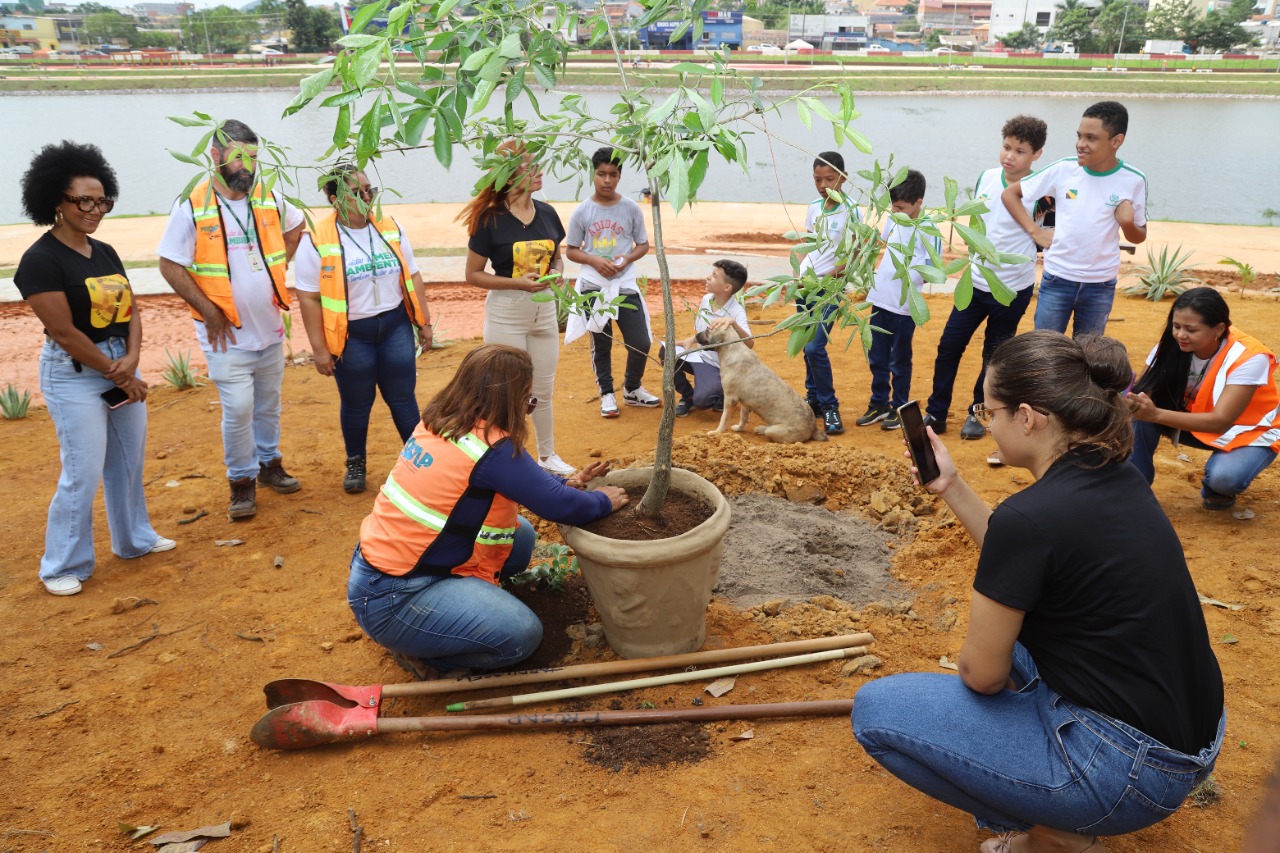 Plantada na área de bosque do Complexo Turístico, a ação com o baobá contou com a participação de alunos do 6º Ano e fez referência ao projeto “Consciência Negra” da unidade escolar. Após plantado o baobá, os estudantes também cantaram em homenagem a árvore: “sagrada é a árvore que vem pra ensinar… A baobá trazendo energia para o povo de cá”.