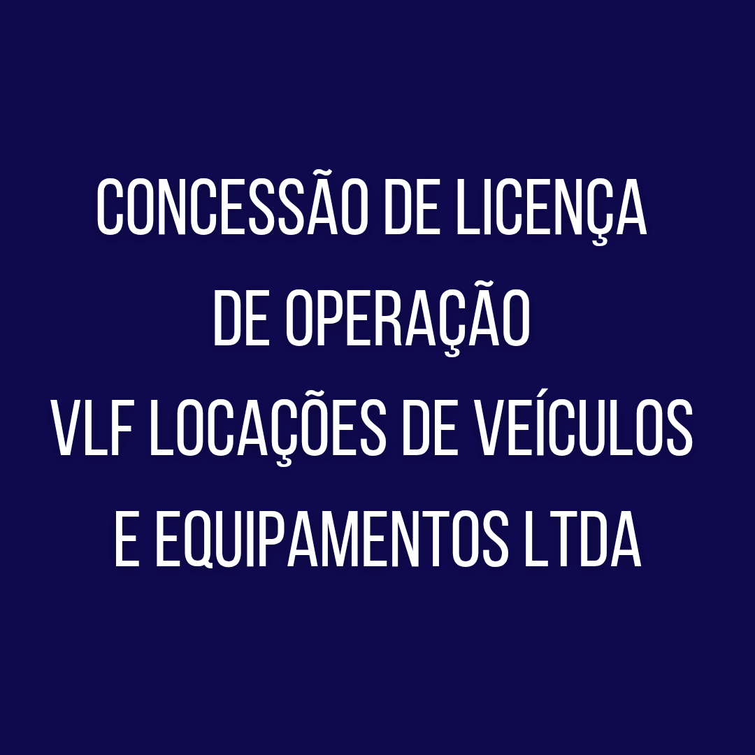 Concessão de licença de operação VLF Locações de Veículos e Equipamentos LTDA