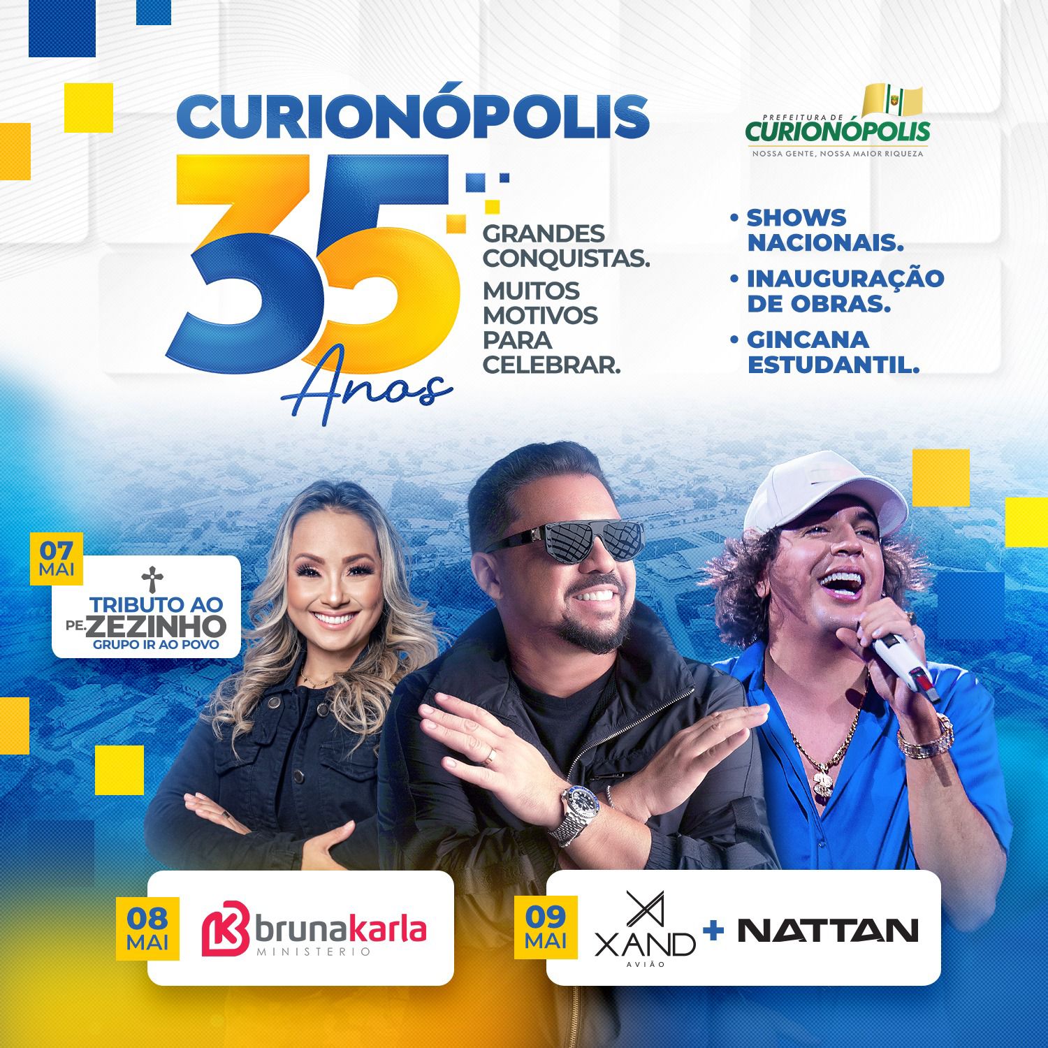“Muitas conquistas, vários motivos para celebrar” é assim que a Prefeitura Municipal de Curionópolis comemora os 35 anos de emancipação política. Este ano, a gestão da Prefeita Mariana Chamon preparou uma grande festa para marcar um trabalho que tem se destacado em todo estado.