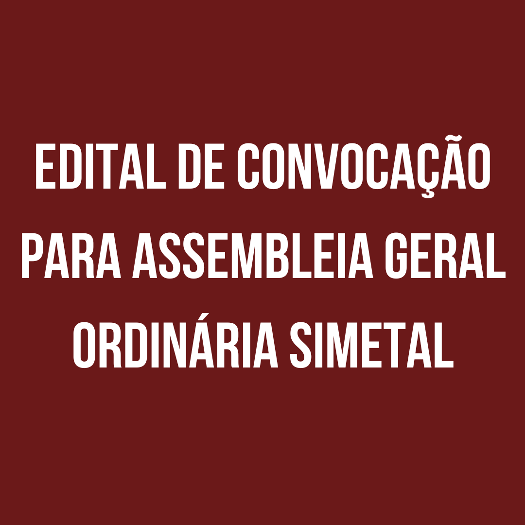 SIMETAL-PARAUAPEBAS, CNPJ: 07.929.949/0001-10, convoca seus associados, com base nos termos do artigo 25 do Estatudo Social, que estejam em pleno gozo de seus direitos, a participarem da Assembleia Geral Ordinária, a ser realizada pelo aplicativo Microsoft Teams no dia 19 de DEZEMBRO de 2024, as 17:00 horas, endereço eletrônico: https://teams.live.com.meet/9356097549117?p=rkJgbjYXPz6GTYPmyF. Para deliberar sobre a seguinte pauta: