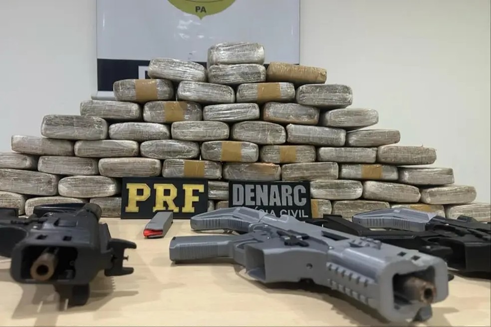 Três fuzis calibre 9 milímetros, fabricados com impressoras 3D e mais de 53 tabletes de drogas do tipo skunk foram apreendidos em uma ação conjunta entre a Polícia Civil e a Polícia Rodoviária Federal na tarde desta terça-feira (7), em Benevides, na Região Metropolitana de Belém.