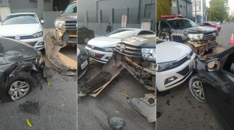 Na manhã de sexta-feira (13), um homem perdeu o controle de seu veiculo e colidiu com uma viatura do Batalhão da Choque da Polícia Militar, a viatura estava estacionado na frente do Batalhão, que fica na Avenida Fernando Guilhon, em Belém. Além da viatura, o homem colidiu com um outro veiculo.