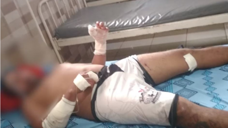 Homem que foi atacado e muito ferido por um Pitbull, no município de Soure, ilha do Marajó. acabou que para se defender do animal usou a primeira coisa que viu na frente que o próprio animal estava usando que foi uma corrente que ele usou para enforcar o animal que causou a morte do Pitbull.