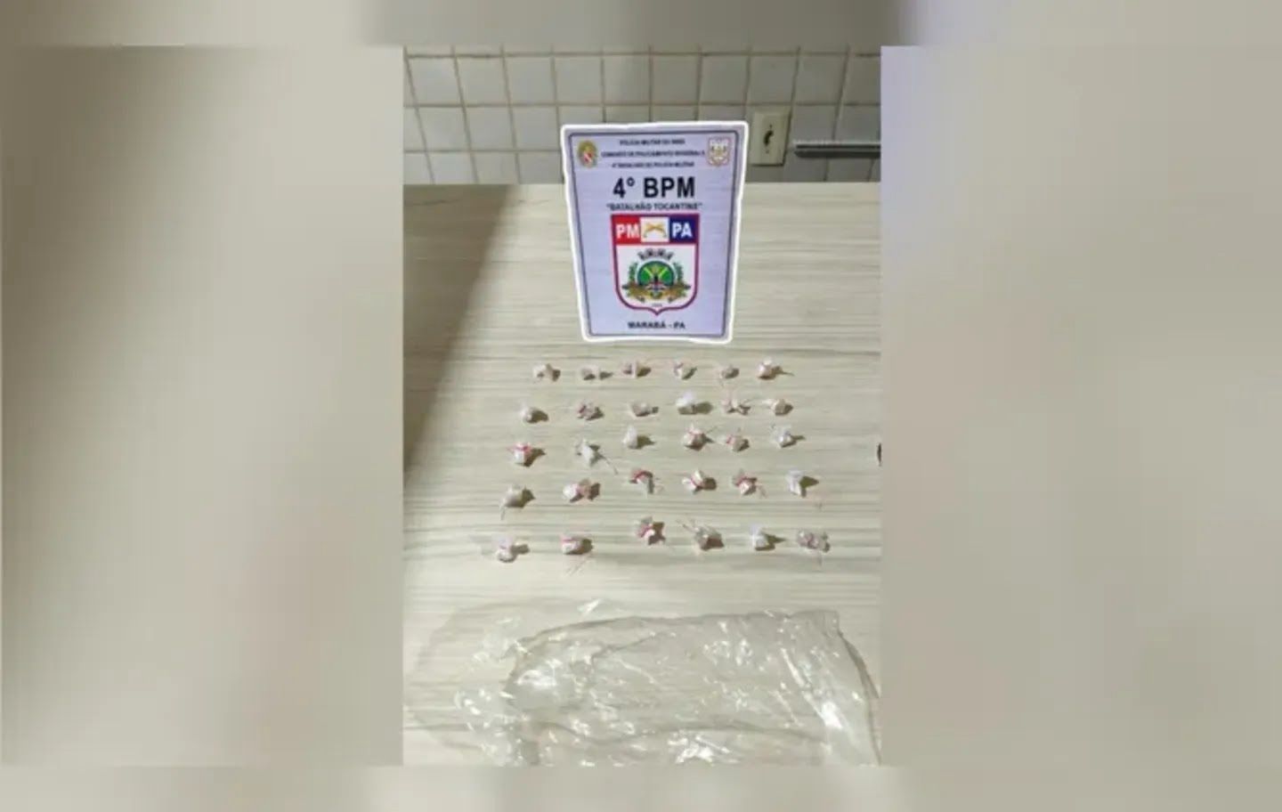 Rodrigo então foi abordado pelos policiais e revistado, mas nada de ilícito foi encontrado em sua posse. No entanto, ao verificar o conteúdo do saco plástico que havia sido descartado pelo suspeito, os policiais encontraram uma trouxa com 30 porções pequenas de substância semelhante à droga conhecida como crack, todas embaladas individualmente.