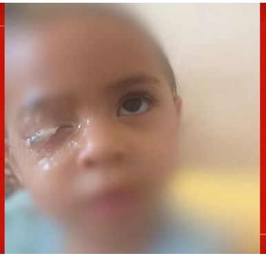 A madrinha contou que no sábado (18), a menina acordou com o olho inchado e vermelho.