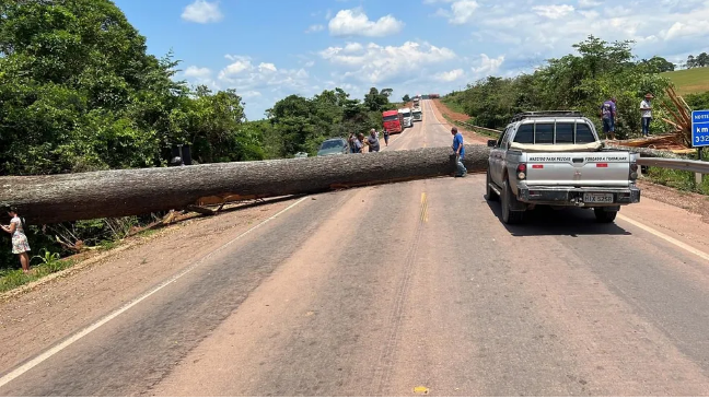 Os dois locais, o da atual interdição e onde a a árvore foi derrubada sexta, ficam distantes menos de 20 quilômetros. A PRF não confirmou se as pessoas bloquearam os dois pontos.