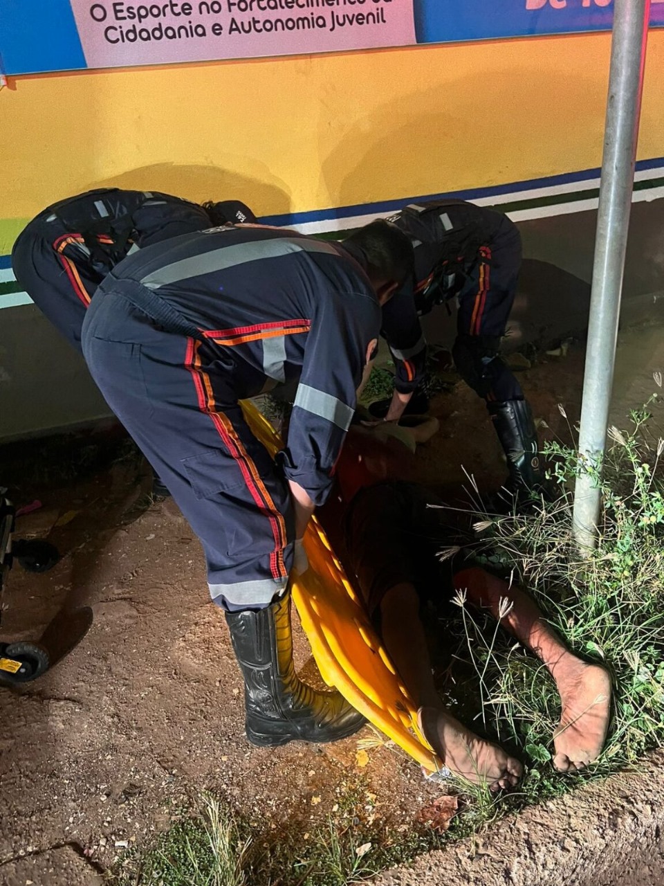 Ao se levantar, o homem tentou se jogar na frente dos carros que trafegavam na rua. O Serviço de Atendimento Móvel de Urgência (SAMU) foi acionado e o levou para uma unidade de saúde do município.