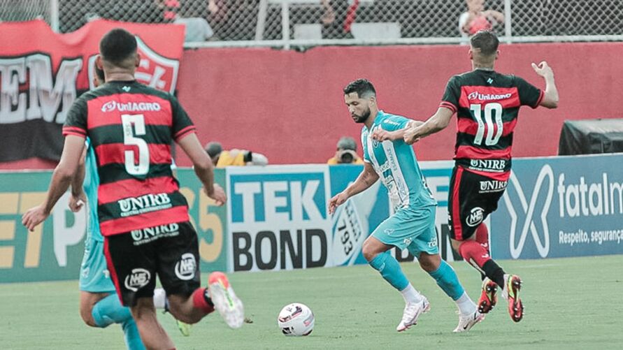 O time bicolor teve uma dura queda aos oito minutos: Mikael deu um pisão no adversário e acabou recebendo cartão vermelho após o árbitro Dyorgines Padovani Andrade consultar o VAR.
