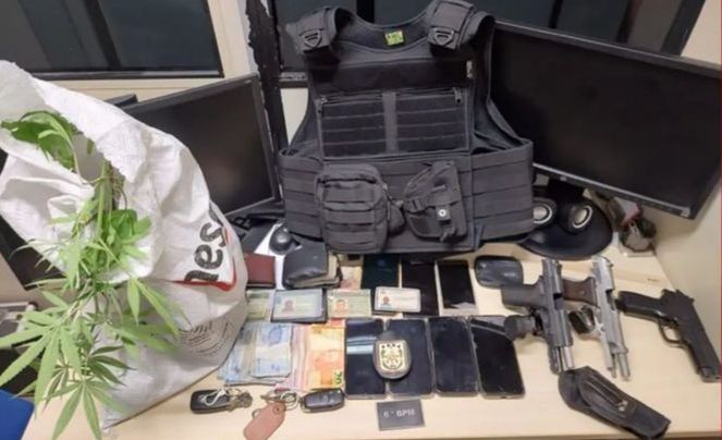 Com os suspeitos foram apreendidos uma pistola de calibre. 40 de propriedade da Polícia Militar, uma pistola calibre 380, com numeração raspada, um veículo e um pé de maconha. Eles foram encaminhados para a Divisão de Crimes Funcionais da Policia Civil do Pará e devem responder pelos crimes de porte ilegal de arma de fogo, extorsão, falsidade ideologica e formação de quadrilha ou bando.