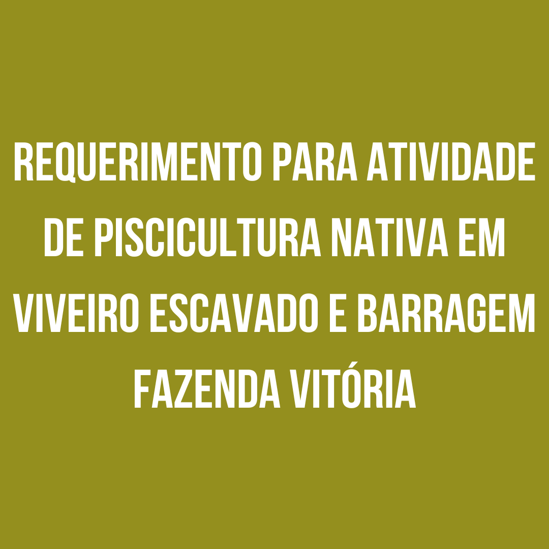 Rogério Pereira de Oliveira, inscrito sob o CPF nº 425.955.252-04, torna público que está requerendo junto a Secretaria Estadual de Meio Ambiente e Sustentabilidade – SEMAS, a Licença de Atividade Rural – LAR, para a atividade de Piscicultura Nativa em Viveiro Escavado e Barragem, situado a Rodovia PA-275, Km 17, Vicinal Aldeia Velha, Km 10, Fazenda Vitória, Zona Rural, Curionópolis, Pará.
