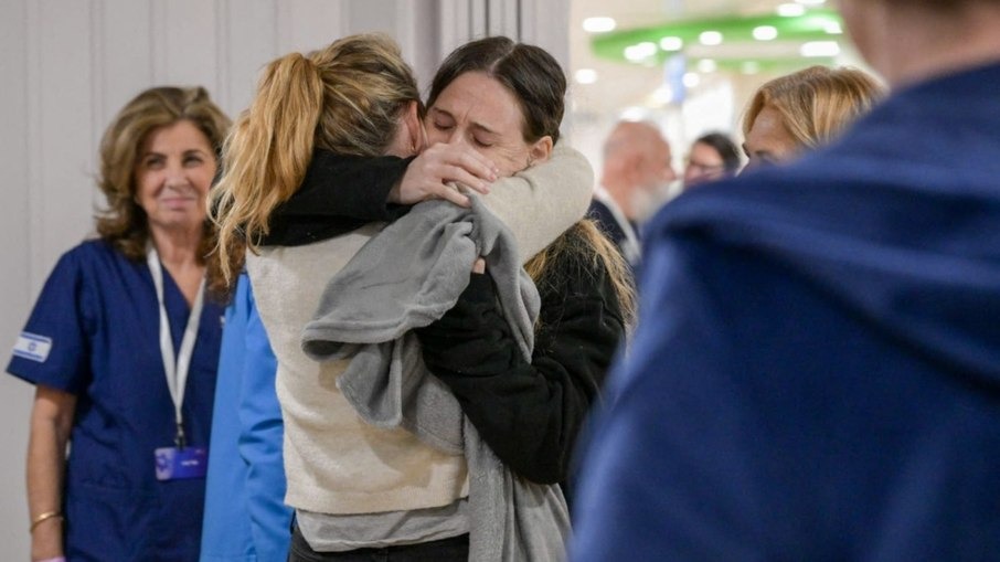 Emily, de 28 anos; Romi, de 24, e Doron, de 31, “cruzaram a fronteira para o território israelense”, confirmou o exército de Israel após a entrada em vigor do cessar-fogo com três horas de atraso. As três reféns israelenses libertadas pelo Hamas voltaram ao seu país, neste domingo (19), no primeiro dia de um cessar-fogo entre Israel e o movimento islamista palestino em Gaza, devastada por mais de 15 meses de guerra.