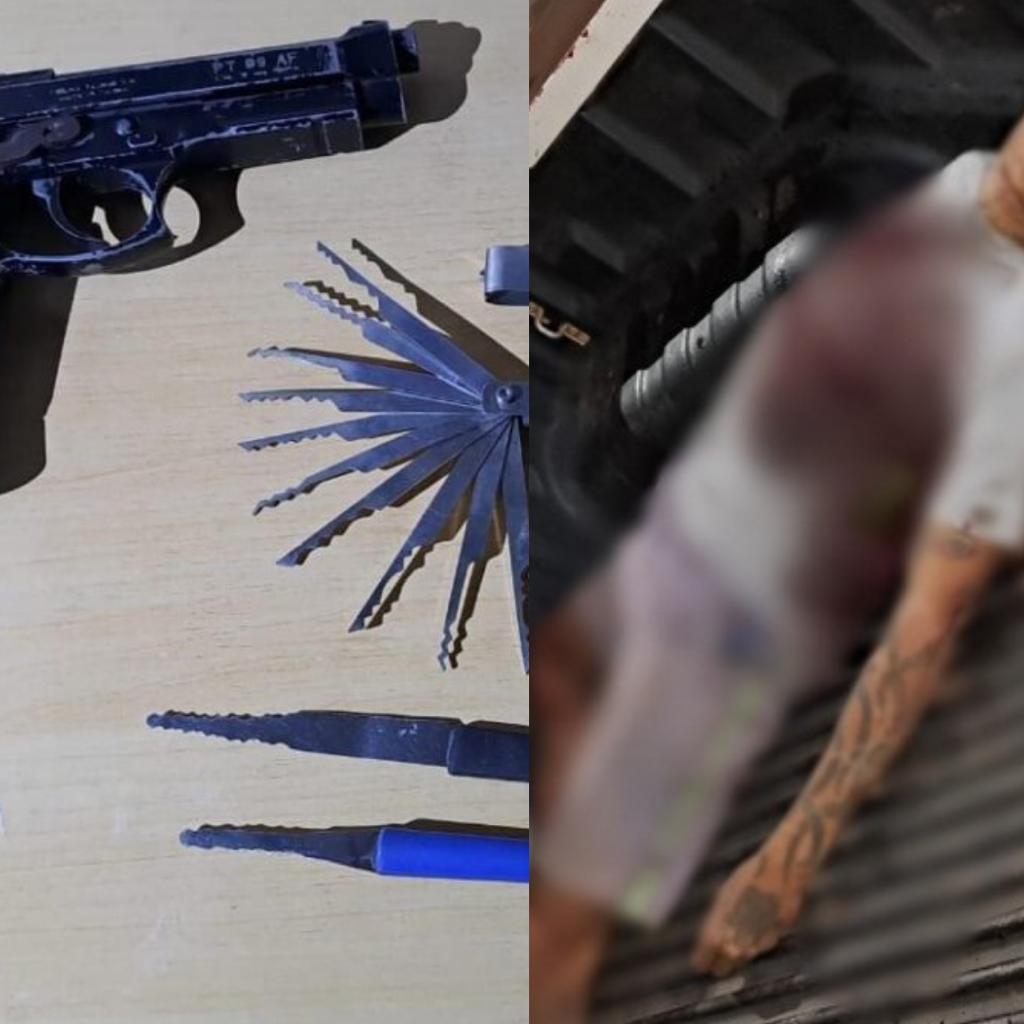 Com o suspeito foi encontrada uma arma de pressão airsoft, replica de uma pistola, além de varias chaves “micha”. Segundo os agentes uma dessas chaves estaria em uma motocicleta da qual os suspeitos estariam saindo quando foram avistados pela guarnição. O proprietário da residência estaria dormindo durante toda a ação dos suspeitos.
