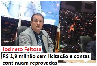 O julgamento é referente ao exercício de 2014, Josineto Feitosa foi condenado no dia 16/09/2020 por despesas realizadas sem comprovação de prévio procedimento licitatório de R$ 2.161.641,62 e com a decisão atual esse valor caiu para R$ 1.981.641,62.