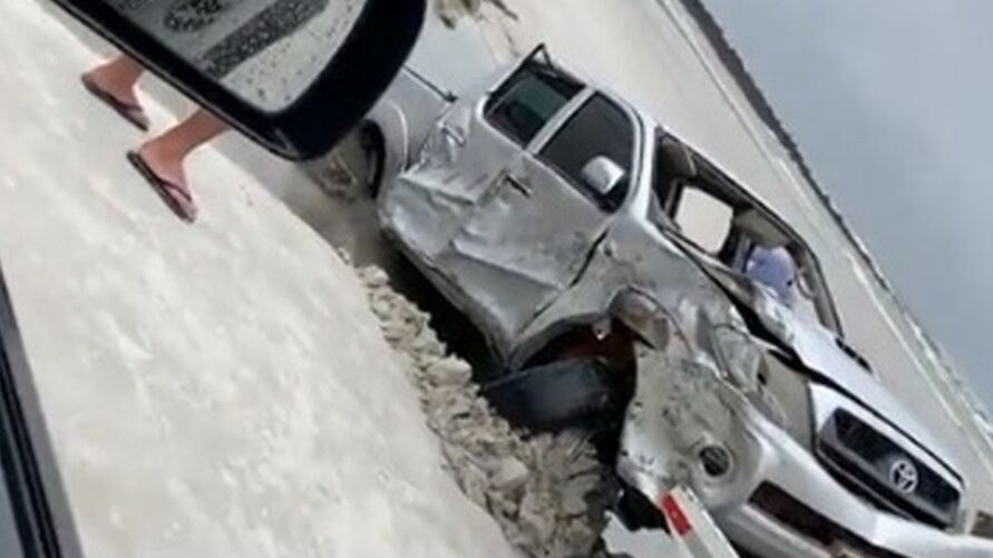 De outra forma, neste domingo (16), um outro vídeo, feito por frequentadores do local, mostra que devido às intempéries, o carro teve vários prejuízos. A força da areia, das águas e do sal deixou a caminhonete com pneu arrancado, lateria amassada e vidros quebrados.